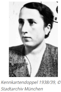 Stenotypistin, geboren am 27.05.1911 in Stuttgart, verheiratet, deportiert am 20.11.1941 aus München nach Kaunas, ermordet am 25.11.1941 in Kaunas (05. Kislev 5702)