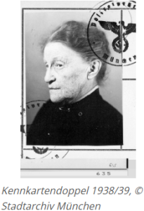 geboren am 16.04.1853 in Neuwied am Rhein, verwitwet, deportiert am 23.06.1942 aus München nach Theresienstadt, ermordet am 25.12.1942 in Theresienstadt (17. Tevet 5703)