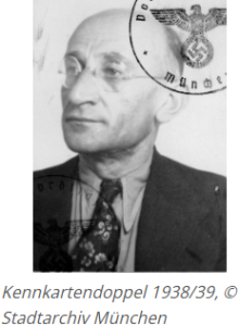 Volksschullehrer, Vertreter, musste später Zwangsarbeit leisten, geboren am 07.06.1892 in Ichenhausen, Kr. Günzburg, verheiratet, deportiert am 20.11.1941 aus München nach Kaunas, ermordet am 25.11.1941 in Kaunas (05. Kislev 5702)