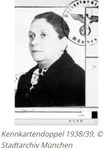 Verkäuferin, geboren am 01.10.1894 in München, geschieden, deportiert am 20.11.1941 aus München nach Kaunas, ermordet am 25.11.1941 in Kaunas (05. Kislev 5702)