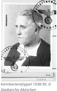 Privatiere, geboren am 10.11.1870 in München, ledig, deportiert am 02.07.1942 aus München nach Theresienstadt, ermordet am 12.04.1944 in Theresienstadt (19. Nisan 5704 (5. Pessach))